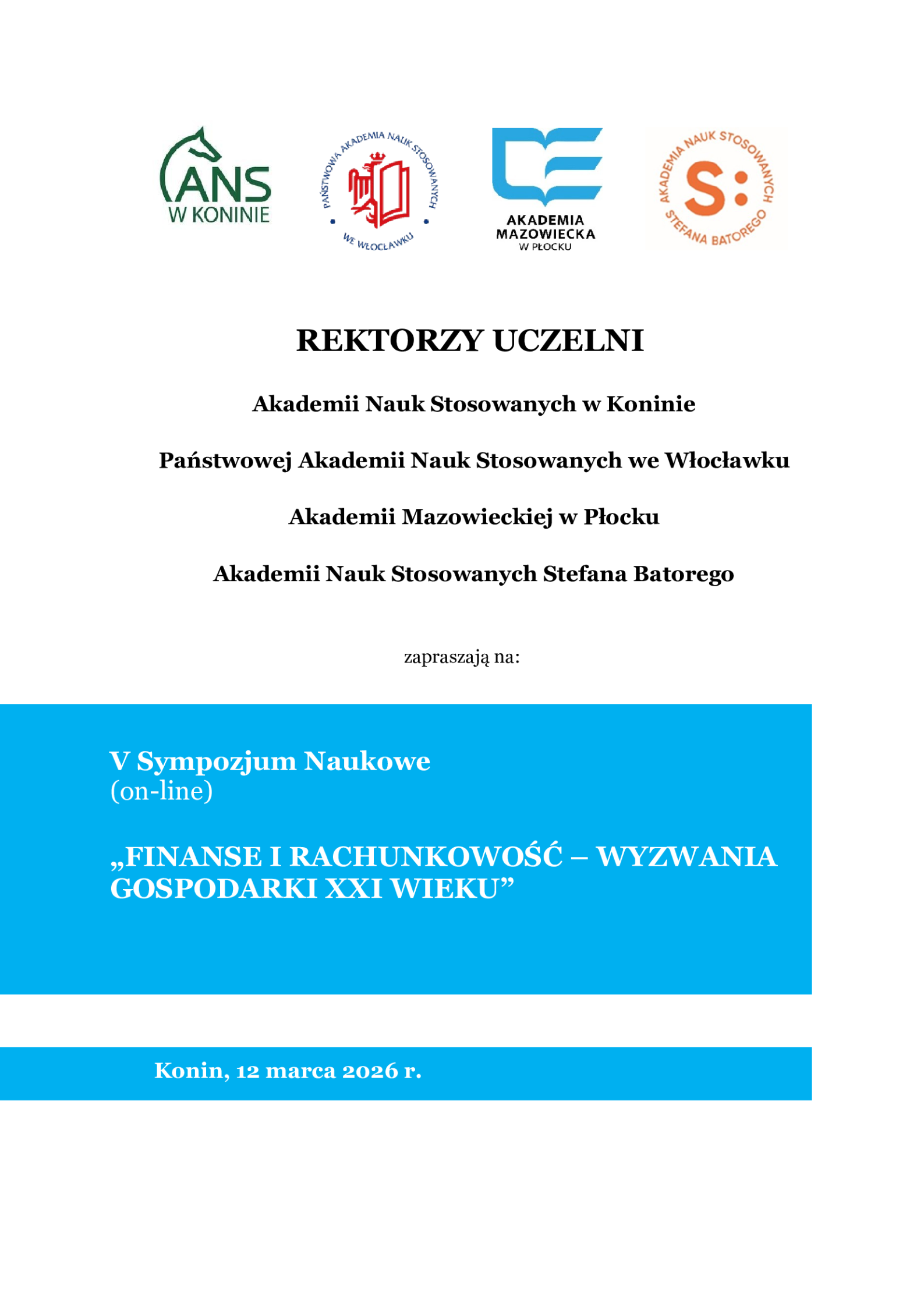 Sympozjum poświęcone jest aktualnym problemom związanym z teorią i praktyką rachunkowości, jak również wyzwaniom i trendom we współczesnych finansach. Celem sympozjum jest przede wszystkim możliwość wymiany poglądów i prezentacji wyników badań naukowych związanych z wyzwaniami oraz zmianami zachodzącymi we współczesnych finansach i rachunkowości, które mają znaczący wpływ na procesy zachodzące w gospodarce.